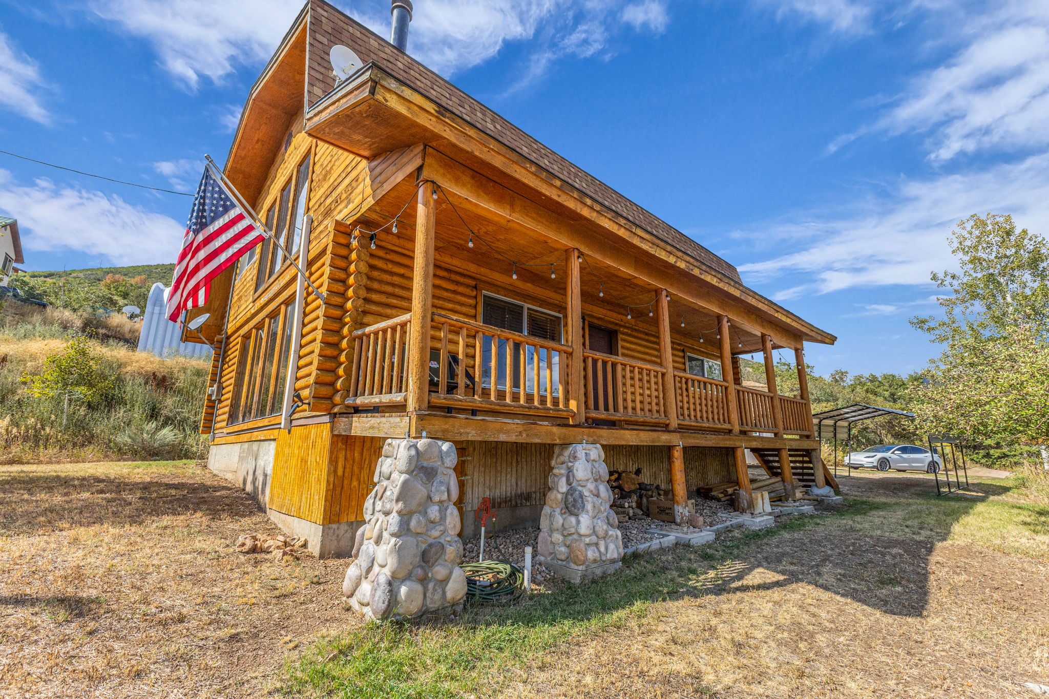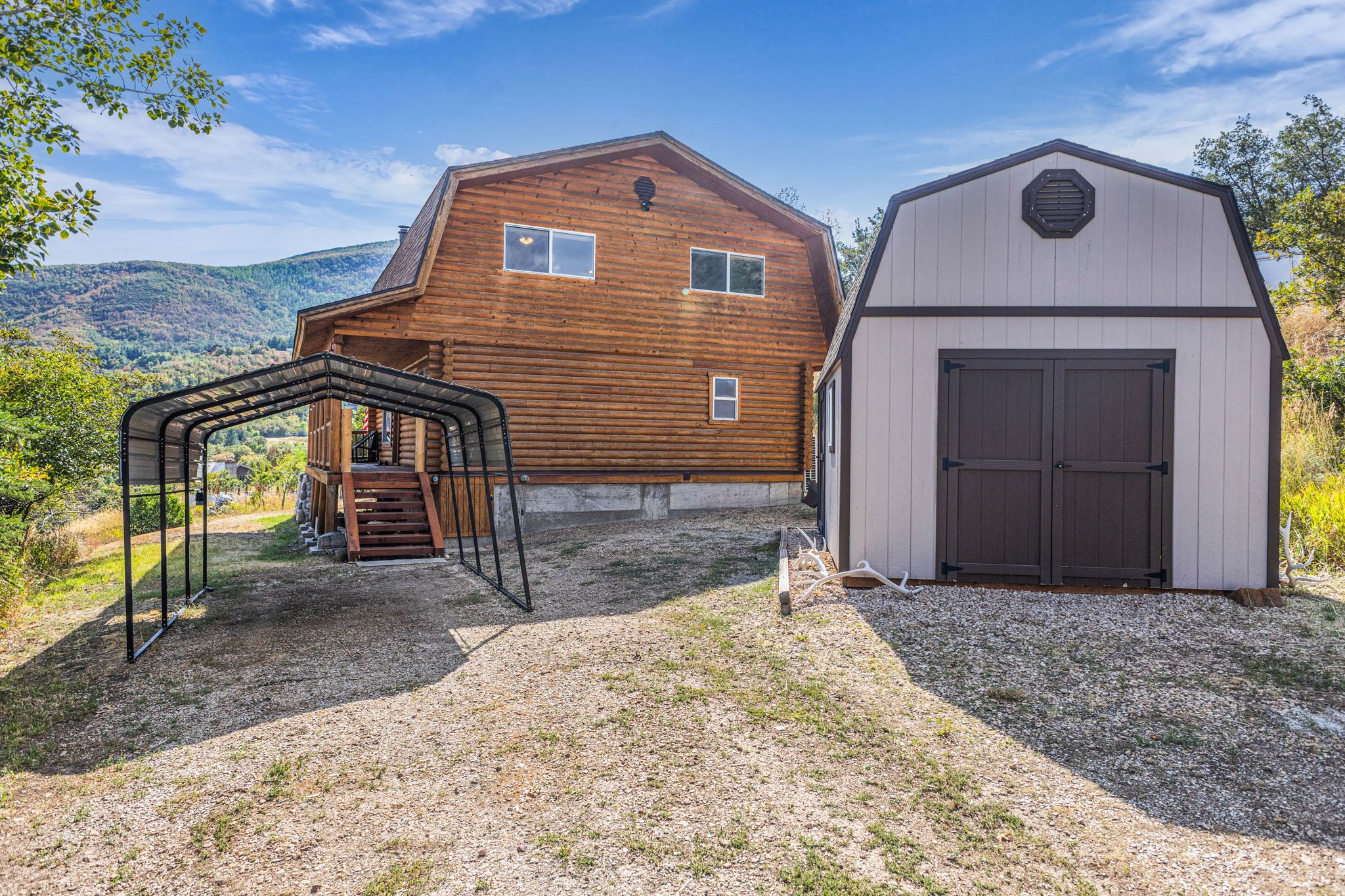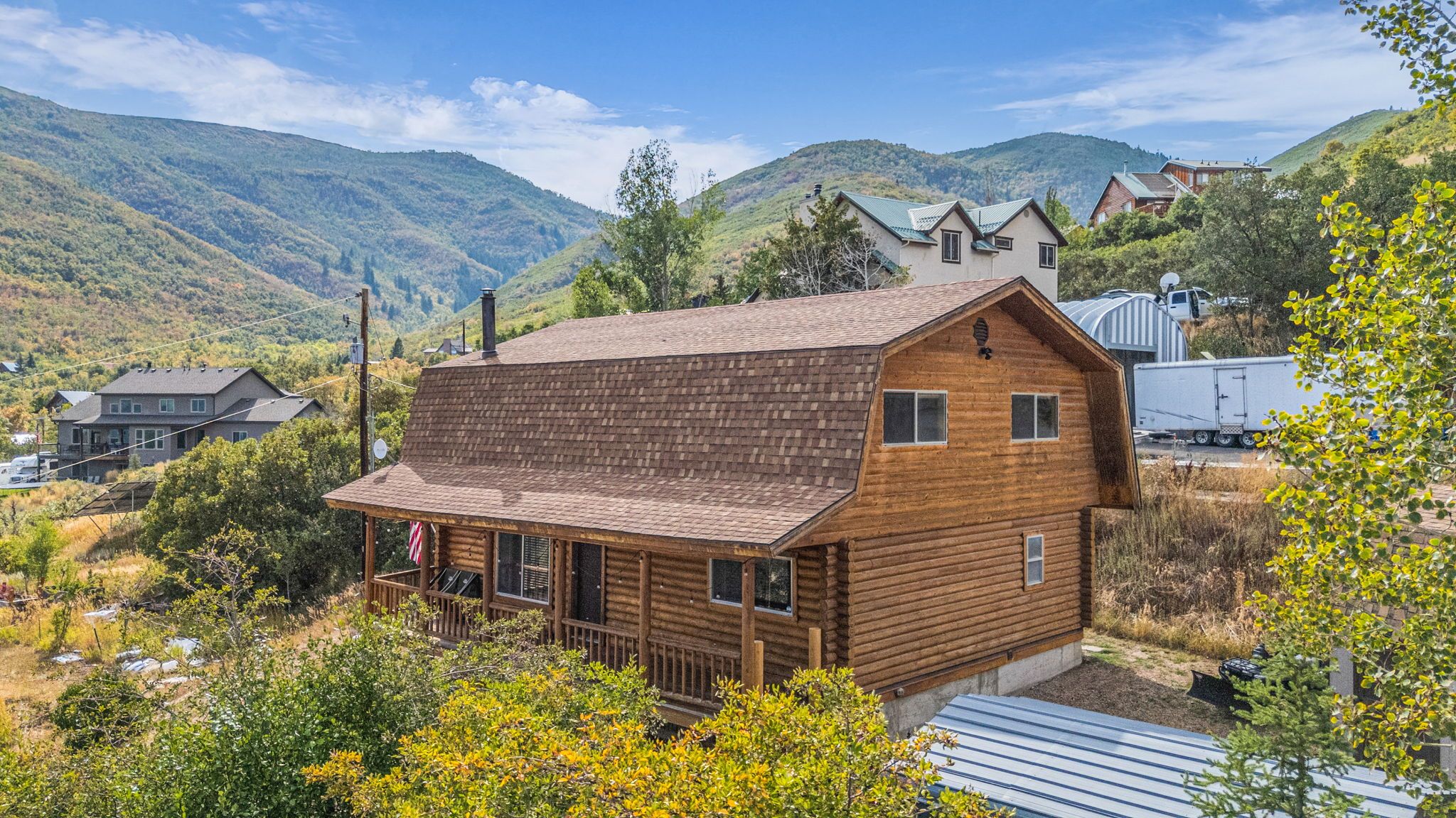 Welcome to one of the most convenient getaways in the Wasatch. Best of both worlds with a feeling of remote living within a few minutes to the heart of Midway. Even better, located right outside of Midway city limits so short-term rentals AOK. 2-story log home built with love on over half an acre. Recently fully updated including granite countertops, laminate flooring, and radiant heat in the main bathroom. Huge front porch with stellar views of the Heber Valley. The open concept kitchen opens to vaulted space and windows to enjoy your views. 3 bed, 2 bath, and a loft. Fantastic, recently updated bathroom with high end finishes and radiant heat. Convenient parking and storage with the carport and shed. List of recent upgrades attached in MLS. The area surrounding the cabin provides a variety of outdoor activities, including hiking trails, four-wheeling, mountain biking, trout fishing on the Provo River, and skiing. There's even a charming fishing pond for kids just down the canyon. If you enjoy golf, there are three impressive golf courses within a few minutes drive. The location is close to great dining, downtown Midway, and only a 15 minute drive to downtown Park City and ski areas including PCMR and Deer Valley. Short-term rentals are permitted, making it a great getaway or investment property.
